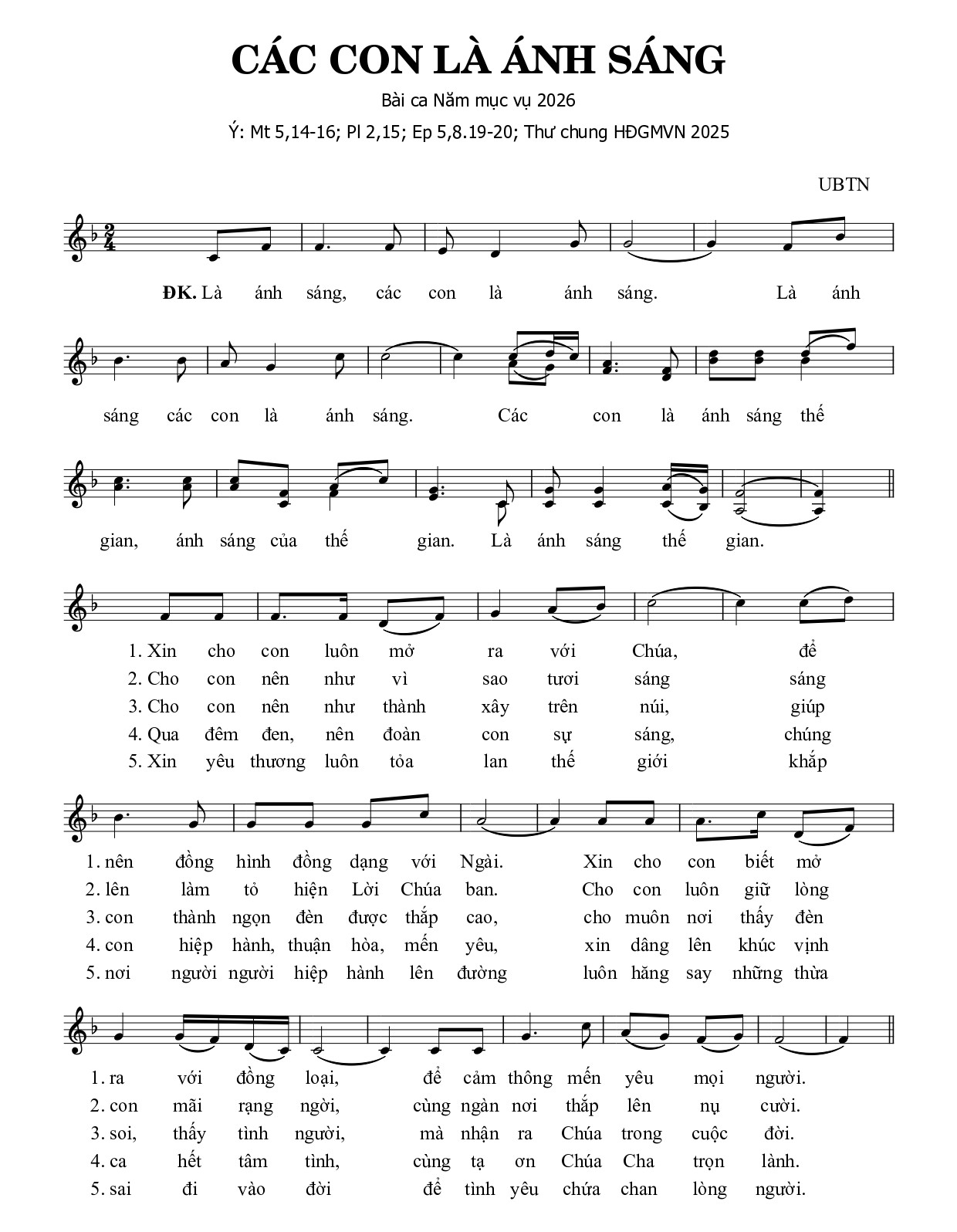 Bài hát chủ đề năm mục vụ 2026 – CÁC CON LÀ ÁNH SÁNG – UBTN